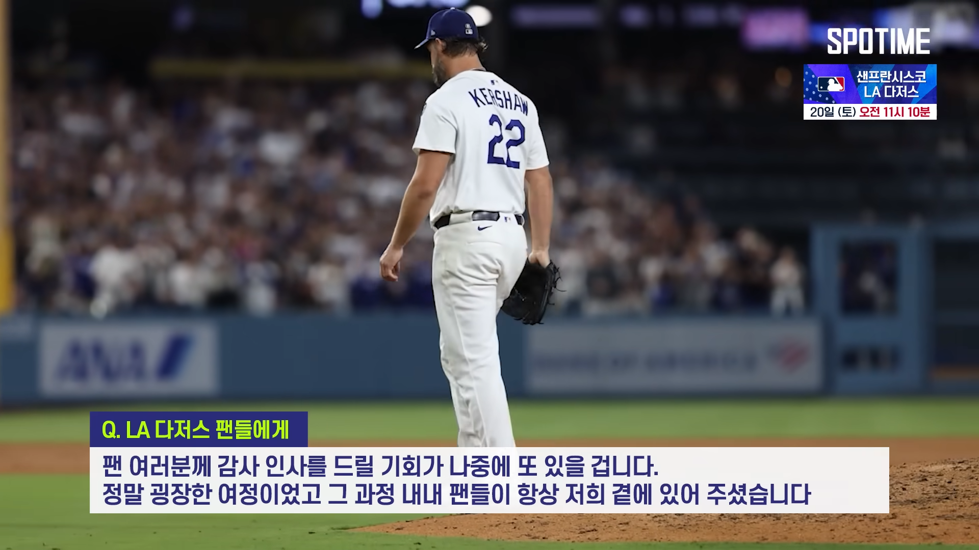 다저스를 응원하든 다른 팀을 좋아하든 오늘만큼은 모두가 커쇼에게 박수를 보내고 있을 겁니다.