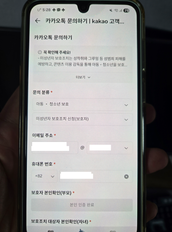오늘 아들 휴대폰을 보다 우연히 미성년자 보호조치 신청이라는 메뉴를 발견했는데 이건 정말 많은 부모님들이 꼭 알아야겠다는 생각이 들어 이렇게 글을 쓰게 됐어요.