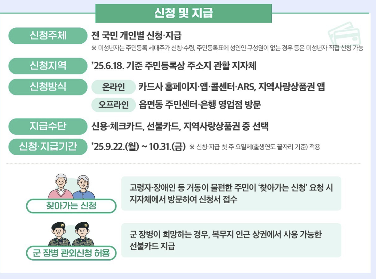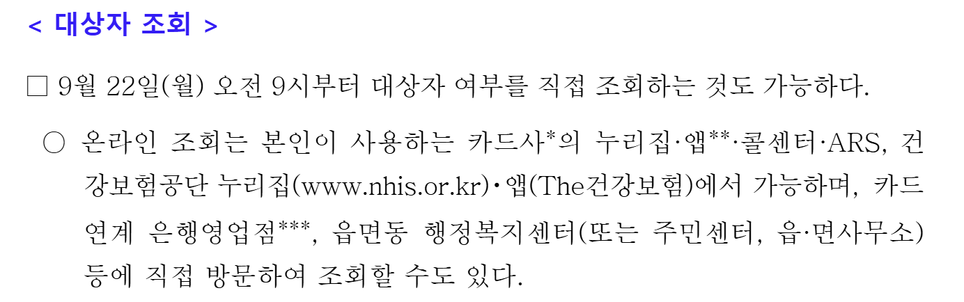 - 신청 방법: 온라인(카드사·건보공단), 오프라인 행정복지센터