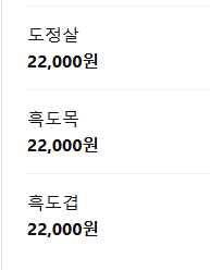 - 흑도목, 흑도겹, 도정살 등 여러 부위를 한 판에 구성