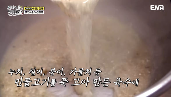 민물고기를 푹 고아서 육수를 낸 다음 그 국물에 부드러운 국수를 말아내는 방식인데요.