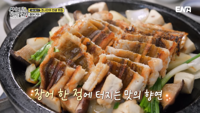 일반적인 숯불 장어구이와는 다르게 이곳은 자연산 바다장어를 직접 손질한 후 뜨거운 돌판 위에서 채소와 함께 조리해 제공합니다. 장어 고유의 고소한 풍미에 채소의 신선한 향이 더해져 입체적인 맛을 느낄 수 있는 방식이죠.