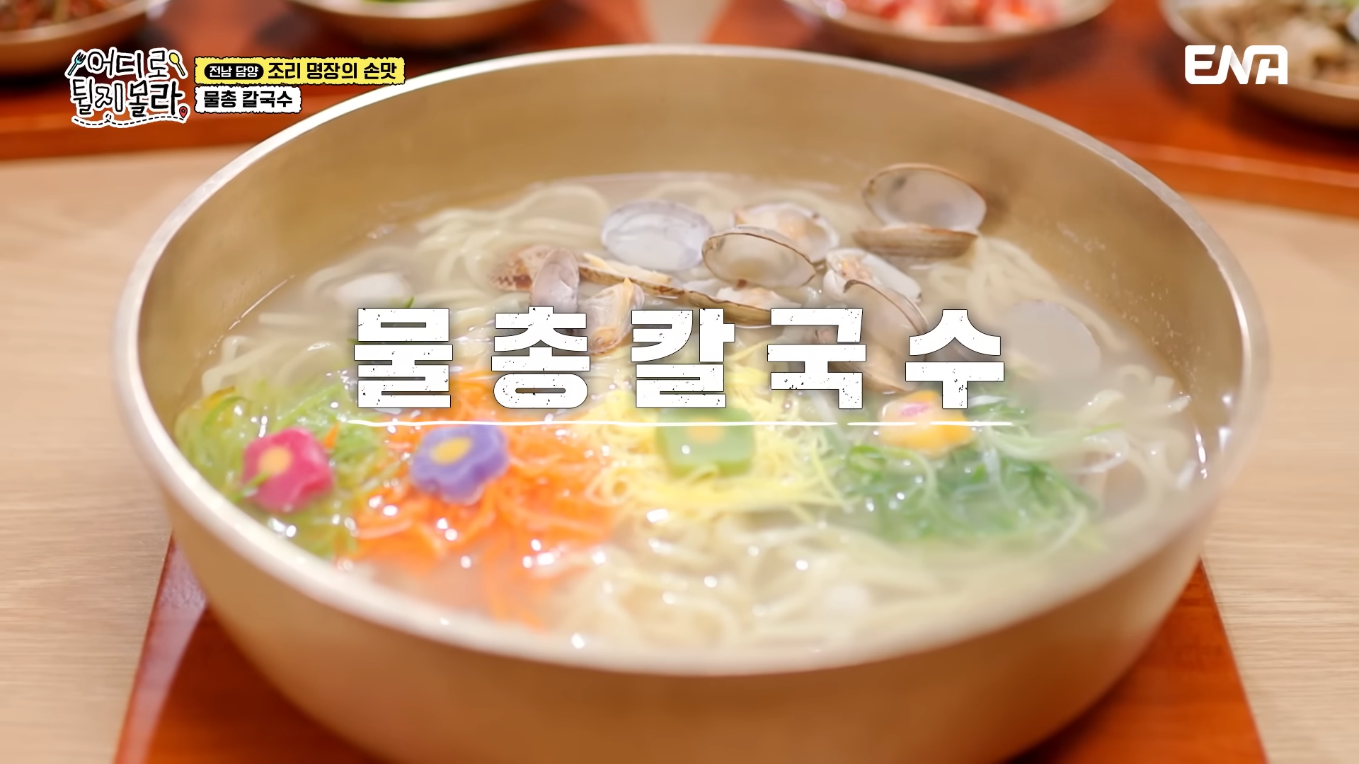 이름이 조금 생소할 수도 있지만 물총조개로 육수를 우려낸 칼국수라고 해요. 그래서인지 국물 맛이 굉장히 시원하고 깔끔하다고 하더라고요.