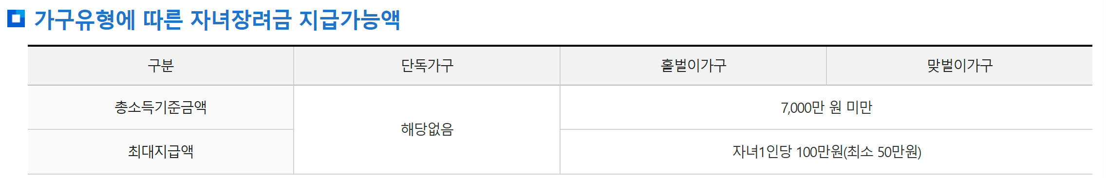 자녀 수 최대 지급 금액