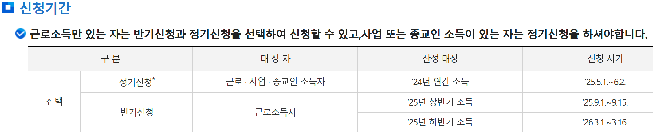 • 정기신청만 가능 (반기신청 없음)