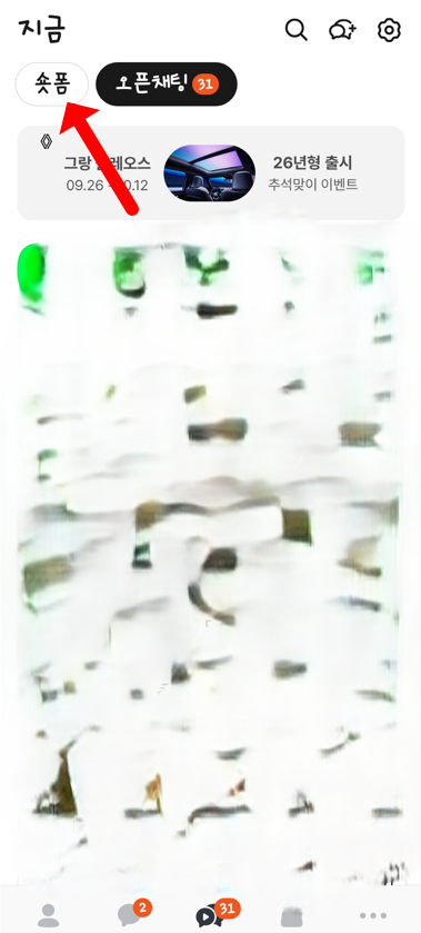 1. 먼저 카카오톡 메뉴에서 숏폼 아이콘을 클릭합니다.