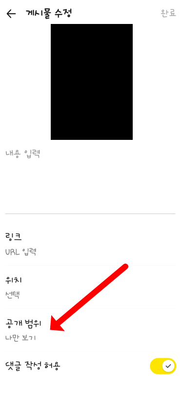 4. 공개 범위’ 설정에서 ‘나만 보기’로 변경한 후 저장합니다.