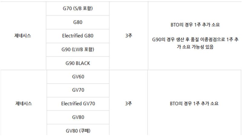 • G90은 품질 점검 강화로 1주 정도 지연 가능성