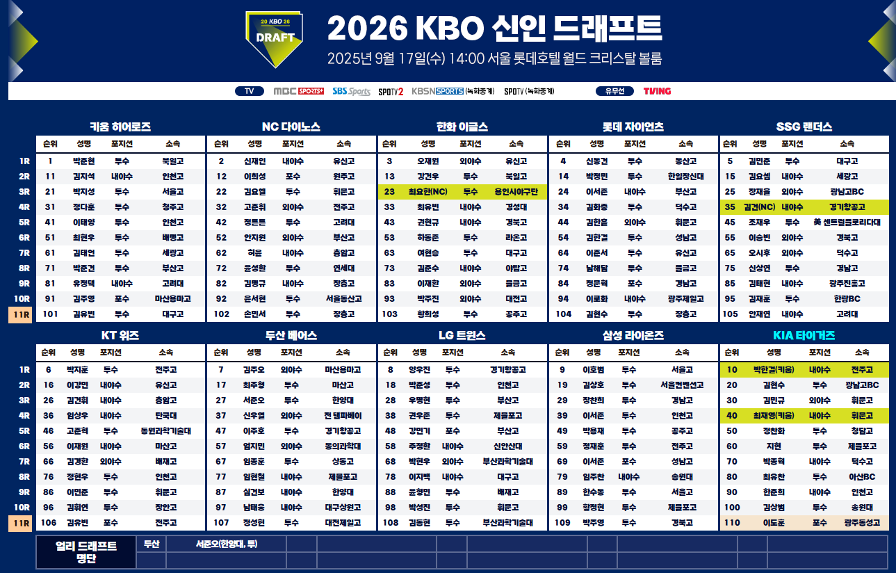 지난 9월 17일, 2026 KBO 신인 드래프트가 열렸고